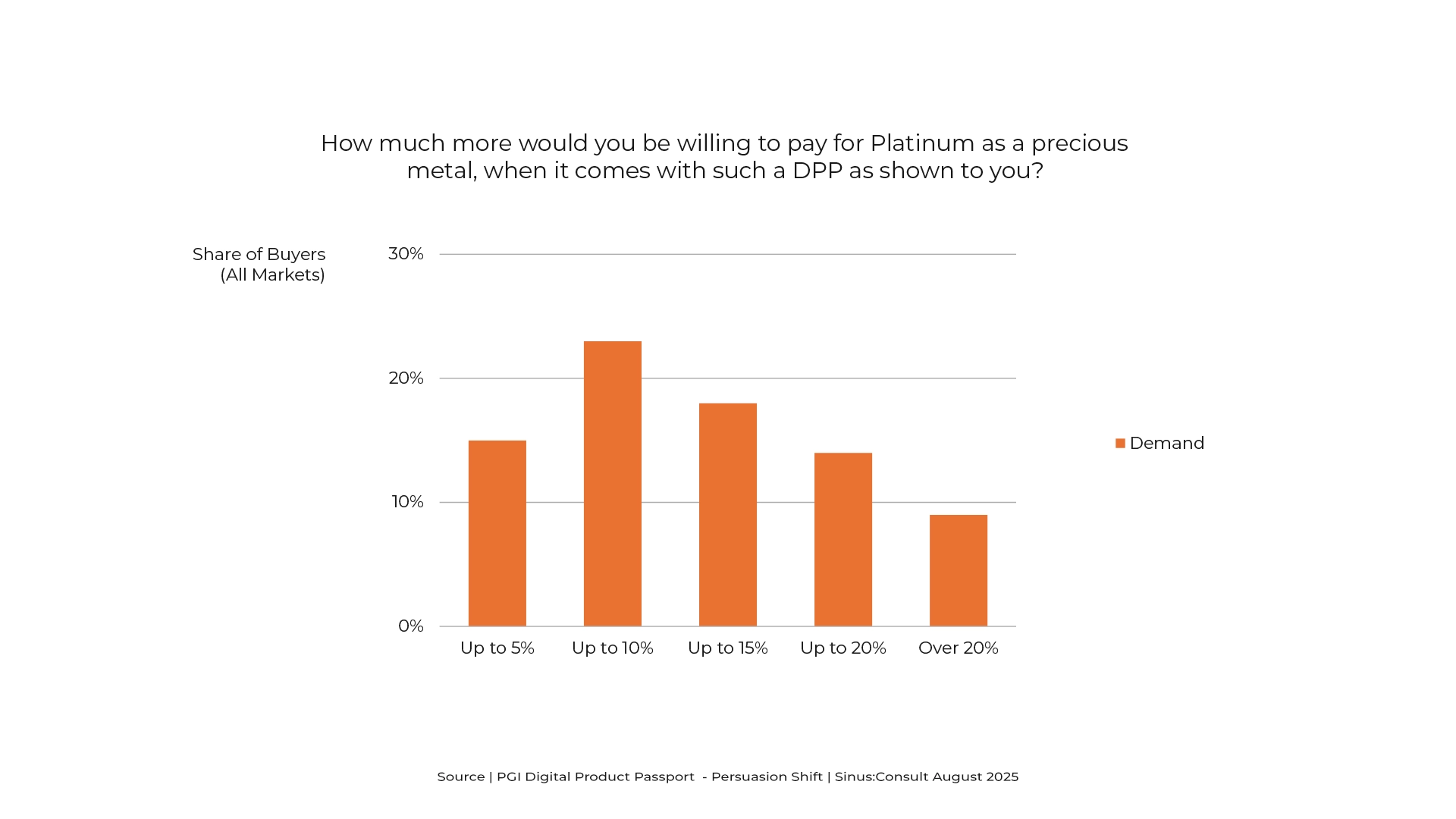 Jewellery buyers across markets report being willing to pay more for jewellery with a Digital Product Passport. Most say they would choose the DPP-enhanced version when comparing visually identical pieces.